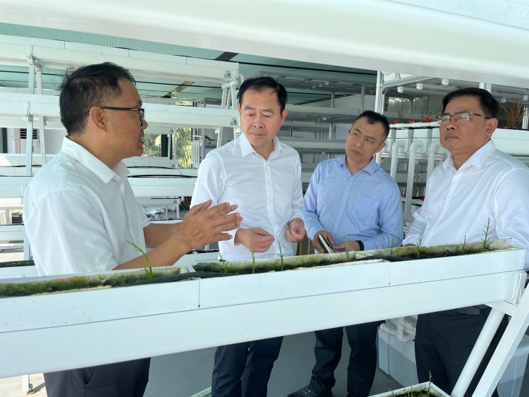 在中国海南盐生植物(海虫草)科普馆、海虫草二期项目施工现场,休闲渔业公司主要负责人汇报了海虫草项目培育种植模式、技术研发及投资计划等情况。陈忠对海虫草项目所取得的显著成果给予了充分肯定,他强调,该项目具有良好的社会效益和经济效益,市场前景广阔,要充分利用冯立田教授团队海虫草海水作物育种技术,建设具有示范作用的农业产业园,带动沿海渔民和种植专业合作社种植,打造一个盐碱地综合利用的产业群,填补渔民转产转业发展的空白。同时,要积极协调美兰区政府给予大力支持,保障项目顺利实施。
