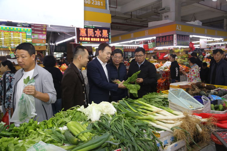 在龙华市场、五源河市场菜篮子直营摊位及菜篮子社区平价菜店滨海新村店、远大店、专家公寓店,陈忠详细询问了蔬菜、肉类、水果等农副产品供应销售情况,尤其是22种基本蔬菜、“一元菜”及甜菜、水芹等春节“特殊菜”的保供情况。在菜篮子江楠批发市场,陈忠详细了解了批发市场价格监测预警、蔬菜调运、食品安全检测等工作情况,并查看了蔬菜储备、货源供应等情况。